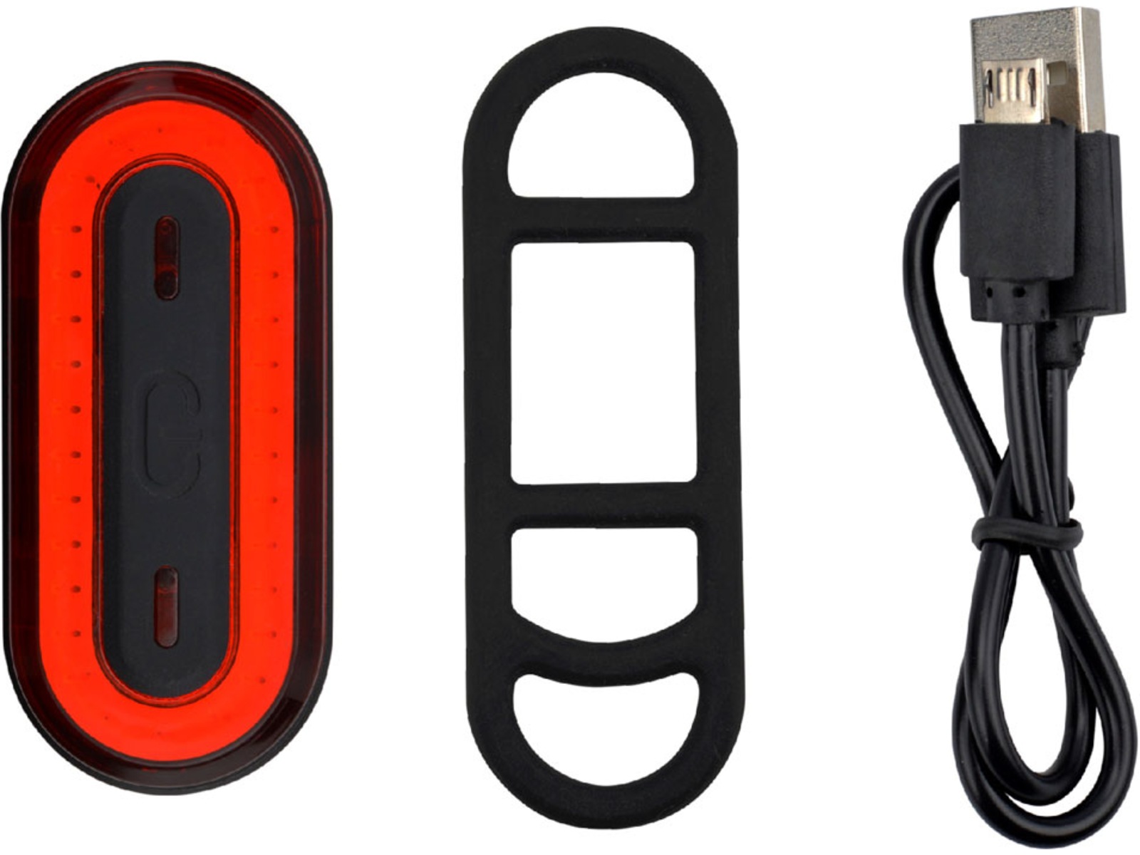 Denne lykten med rødt COB LED-lys og en lysstyrke på 50 lumen gir god synlighet bakfra. Velg mellom 6 ulike lysmoduser: 3 moduser for fast lys og 3 moduser for blink. Full styrke gir lys i ca. 1 time og 40 minutter, og hurtigblink gir lys i hele 10 timer.