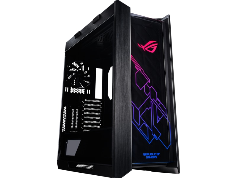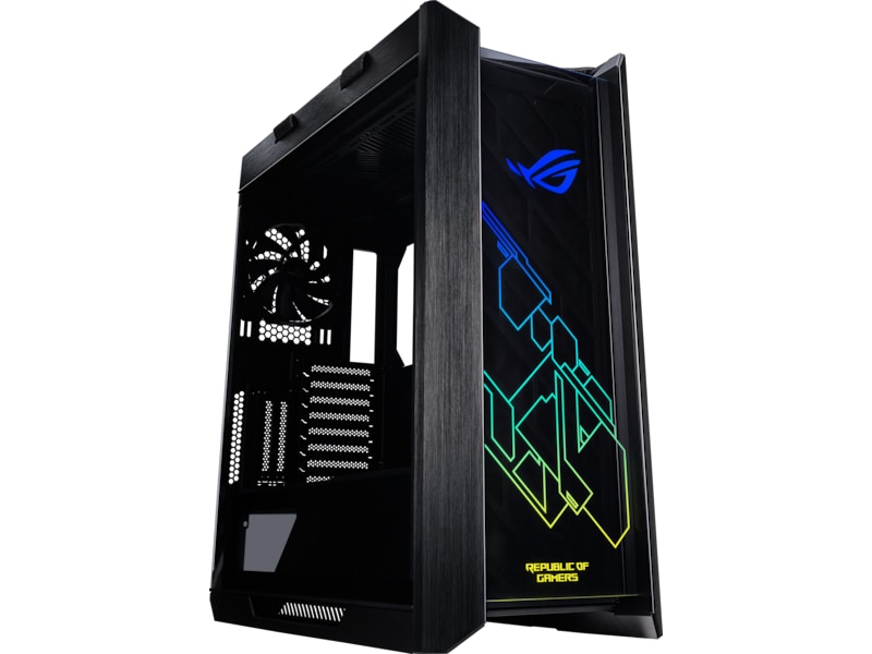 ROG Strix Helios er laget for å kunne vises frem, med tre 4 mm paneler av farget og herdet glass, montert i en raffinert børstet aluminiumsramme. Et stilfullt og tøft dynamisk RGB-lyssett er integrert inn i frontpanelet for å sette konkurrentene i skyggen.