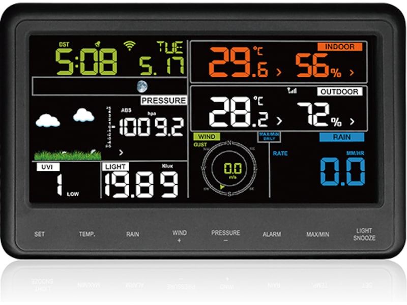 Komplett stasjon som måler temperatur og luftfuktighet både ute og inne, vindretning og hastighet, UV-verdi (lysstyrke), samt regnmåler. Barometeret har også mulighet for å forutse været frem i tid og gir en indikasjon på om det blir sol, delvis sol, overskyet, regn eller snø.