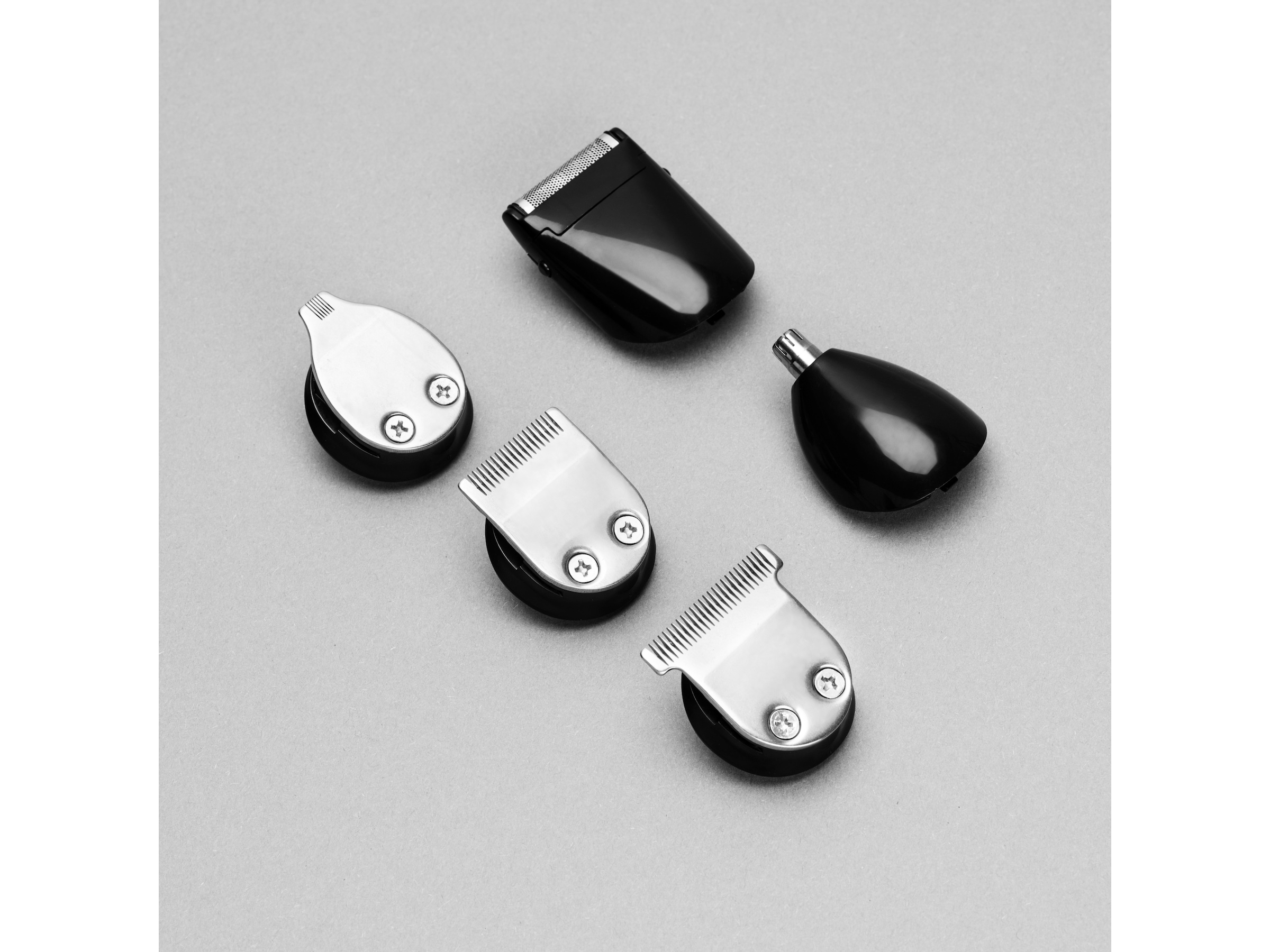 Multitrimmer for ansikt (skjegg, øre og nese), hår og kropp. Uttrykk din egen stil og vær din egen frisør! Til ansiktshår: skjegg, øre og nese samt kroppshår Selvkvessende blad i rustfritt stål 14 lengdeinnstillinger Oppladbart Li-Ion-batteri for bruk i 45 minutter uten ledning Bruk med eller uten ledning