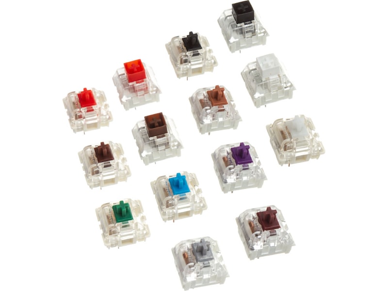 Alle bryterne i prøvepakken er kompatible med modulbaserte, mekaniske GMMK-tastaturer.