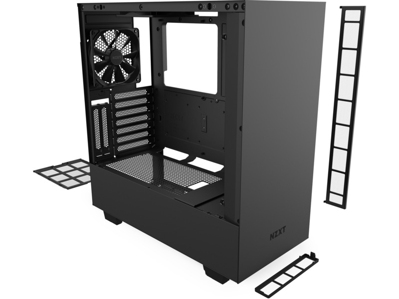 Støtter 120 mm-radiator bak, Kabelstyringssystem, Frontstøvfilter, Støtter 2 x 120/140 mm-radiatorer foran, Vannkjøling klar, PSU-støvfiltre