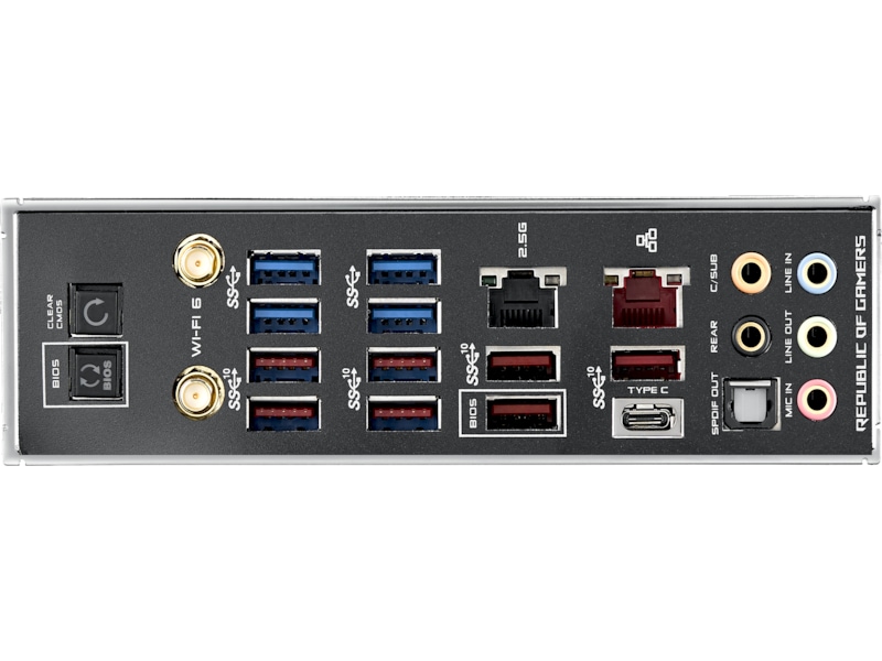 | Grensesnitt | 1 x mikrofon - minijakk, 4 x USB 3.2 Gen 1, 1 x LAN (Gigabit Ethernet), 1 x USB-C Gen2, 1 x lydinnlinje - minijakk, 1 x TOSLINK, 1 x lydutlinje (senter/subbasshøyttaler) - minijakk, 1 x lydutlinje - minijakk, 7 x USB 3.2 Gen 2, 1 x LAN (2.5Gigabit Ethernet), 1 x lydutlinje (bakre) - minijakk |