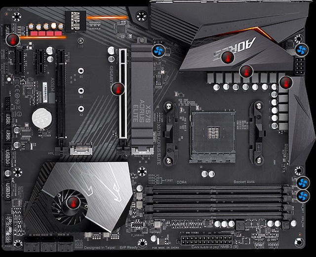 GIGABYTE Double Locking Bracket, On/Off Charge, GIGABYTE Smart Fan 5, AMD StoreMI technology, Ultra Durable PCIe Armor, 12+2 Phase Power Design, Solid Pin Power Connectors, RGB FUSION 2.0, AMD CrossFireX-teknologistøtte, M.2 Thermal Guard, AutoGreen, Advanced Thermal Design with Enlarge Heatsink, Formontert I/O-skjerm, AMD Quad CrossFireX-teknologistøtte, Q-Flash Plus