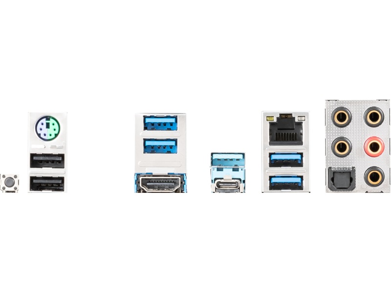 Grensesnitt 1 x TOSLINK, 1 x USB-C Gen2, 4 x USB 3.2 Gen 1, 1 x USB 3.2 Gen 2, 1 x lydinnlinje - minijakk, 1 x lydutlinje - minijakk, 2 x USB 2.0, 1 x HDMI, 1 x PS/2-tastatur / -mus, 1 x LAN (Gigabit Ethernet), 1 x lydutlinje (bakre) - minijakk, 1 x lydutlinje (senter/subbasshøyttaler) - minijakk, 1 x mikrofon - minijakk
