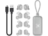 Tupper/bøyler i silisium i flere størrelser sørger for en sikker og behagelig passform for alle ørestørrelser, slik at du kan fokusere på omgivelsene dine og musikken istedenfor å bekymre deg for at øreproppene faller ut. Lyd er det eneste du burde oppleve.