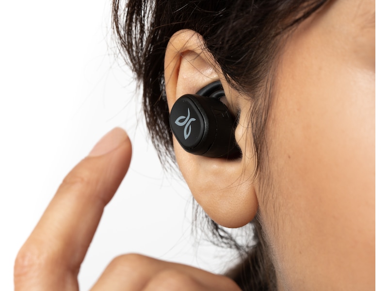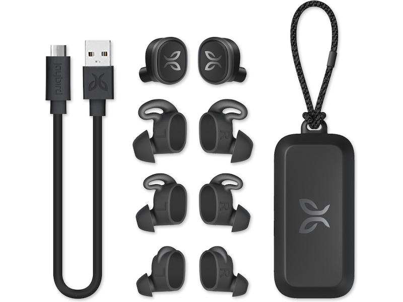 ørepropp: 2.2 cm x 1.8 cm x 2.4 cm / 6 g, Ladeboks: 7.4 cm x 2.4 cm x 3.65 cm