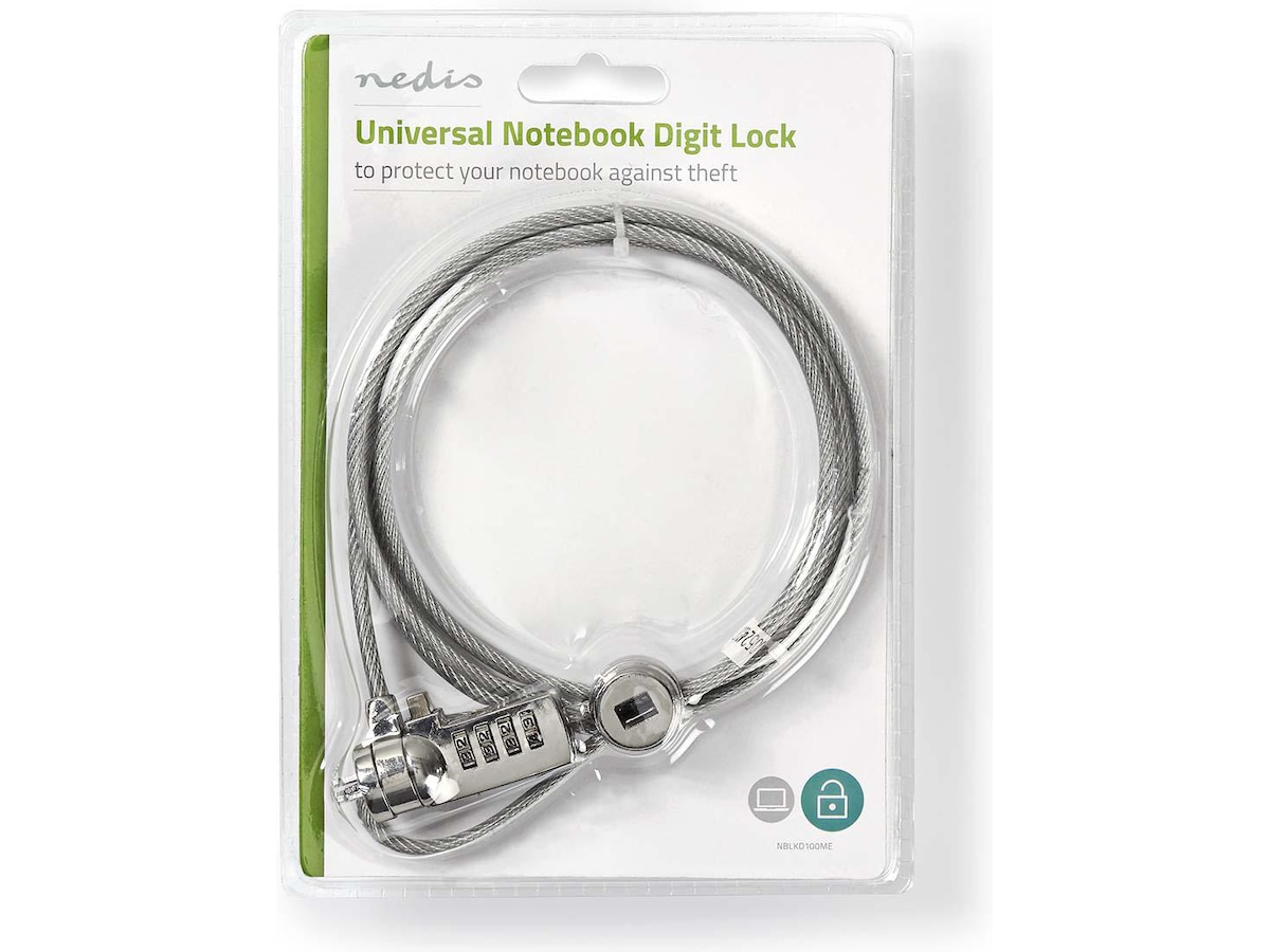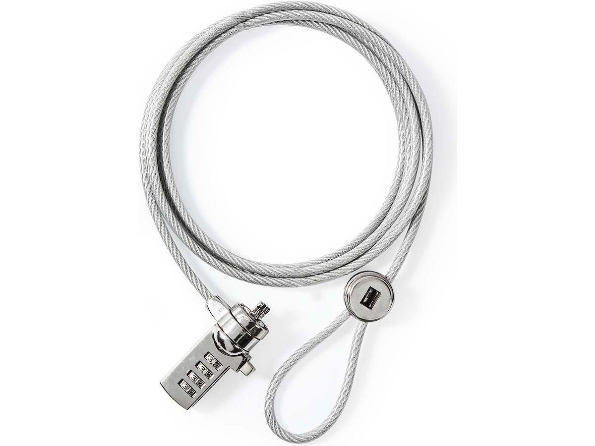 Med denne sterke kabellåsen beskytter du alle enheter med et innebygd sikkerhetsspor som en bærbar PC, beamers, LCD-skjermer, men også stasjonære datamaskiner. Den 1,8 meter lange kabelen har en hendig løkke som lar deg installere og sikre enhetene enkelt. Ingen nøkler nødvendig.