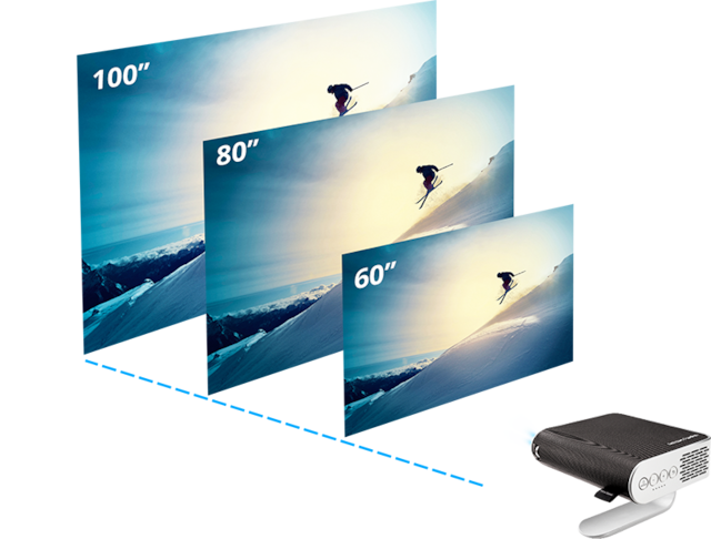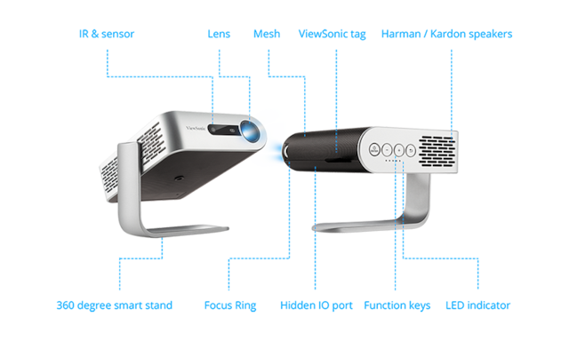 ViewSonic M1+ er en bærbar WVGA LED-projektor som leverer praktisk underholdning i alle slags rom. Med et innebygd batteri og over 30 000 timers driftstid, vil denne projektoren levere mange års multimedia-underholdning uansett hvor du plasserer den. M1+s kompakte og lette design veier mindre enn 1 kilo, og det gjør den ideell for å flytte fra rom til rom eller til innendørs/utendørs bruk. Projektoren har et integrert smartstativ som gir enkelt 360-graders oppsett, samtidig som det også fungerer som linsedeksel. Når linsen er avdekket, slås projektoren automatisk på med full lysstyrke og er klar til bruk.