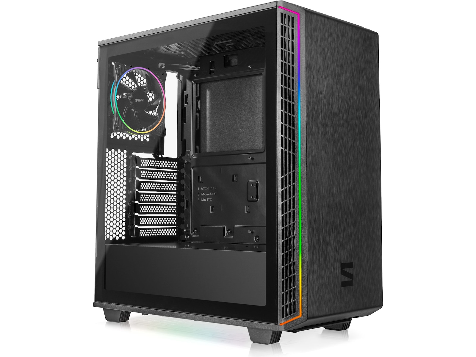 Det nye Svive Halo S650 er et stilrent kabinett som er fullpakket med praktiske funksjoner, designet for prestasjon og brukervennlighet. Kabinettet er lite og kompakt, men rommer mye og er klart for high-end systemer som tilfredsstiller entusiaster. Med innebygde RGB lys, støtte for vertikalt grafikkort og herdet glasspanel er dette et kvalitetsprodukt til konkurransedyktig pris.