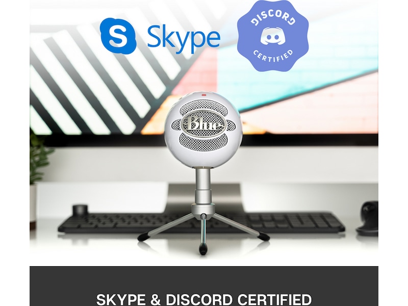 Snowball iCE er Skype- og Discord-sertifisert for garantert ytelse. Så uansett om du gjennomfører et virtuelt intervju via Skype-møter, snakker i en konferansesamtale, strømmer spill direkte på Twitch eller pleier et forhold over hele kloden, vil du bli hørt høyt og tydelig med Snowball iCE.