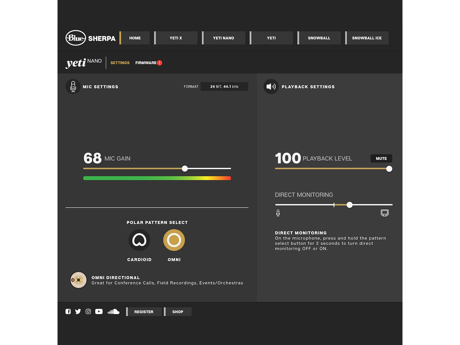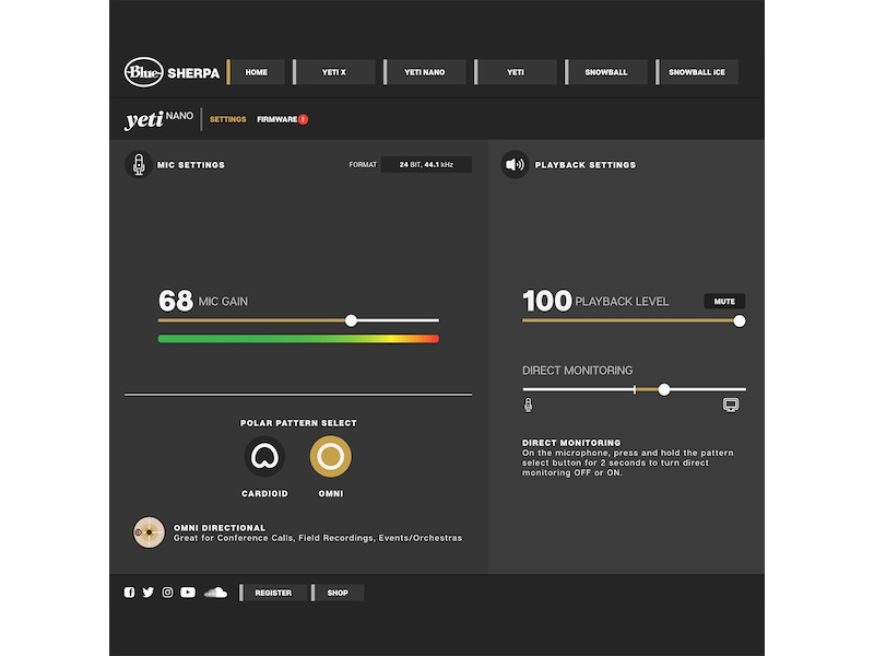 Kardioid / flerretnings (svitsjbar) - 20 - 20000 Hz
