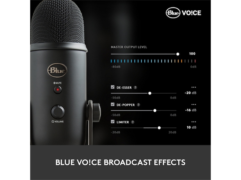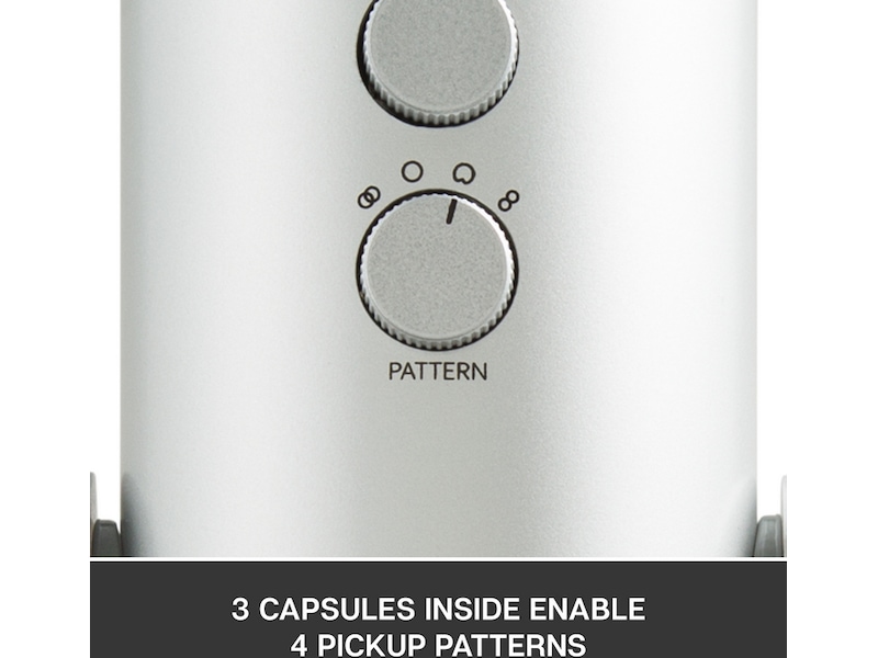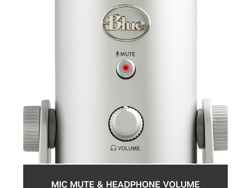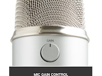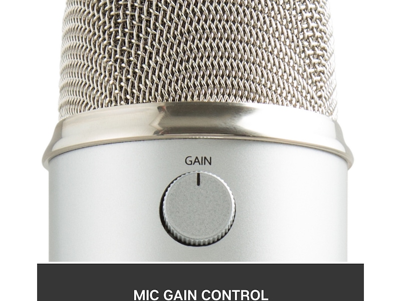Yeti har studiokontroller for hodetelefonvolum, valg av mønster, øyeblikkelig demping og mikrofonforsterkning slik at du kan kontrollere alle nivåer av opptaksprosessen. Hvis du opplever forvrengning eller feedback mens du spiller inn en spesielt høylytt kilde, slik som den øredøvende lyden av et skred, er det bare å justere mikrofonens følsomhet med forsterkningsregulatoren. Eller hvis du vil ta en pause midt under en podkast, kan du bruke knappen for øyeblikkelig demping.