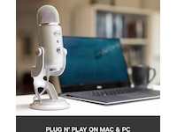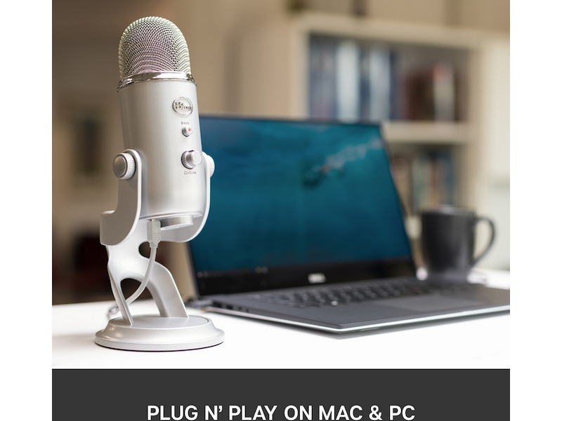 Hvem trenger en læringskurve? Yeti ble designet for å gi en praktisk arbeidsflyt uten problemer. Installer den på bare noen få sekunder med det medfølgende skrivebordsstativet, eller koble den direkte til et mikrofonstativ. Juster mikrofonforsterkningen, opptaksmønsteret, volumet på hodetelefoner, eller demp/slå av demping med lett tilgjengelige kontroller. Og ta opp komfortabelt med Yetis sideopptaksfunksjon – bare snakk, syng eller spill inn i Yeti på samme side som den blå logoen for å ta opp lyd av profesjonell kvalitet