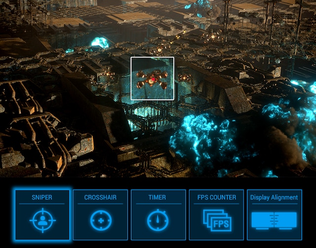 Ultra-Low Blue Light Technology, HDCP, Trace Free Technology, Flicker Free-teknologi, ASUS GameVisual Technology, ASUS GamePlus, GameFast Input Technology, Color Temperature Selection, ASUS Extreme Low Motion Blur technology, ASUS Extreme Low Motion Blur Sync, 99% sRGB color gamut