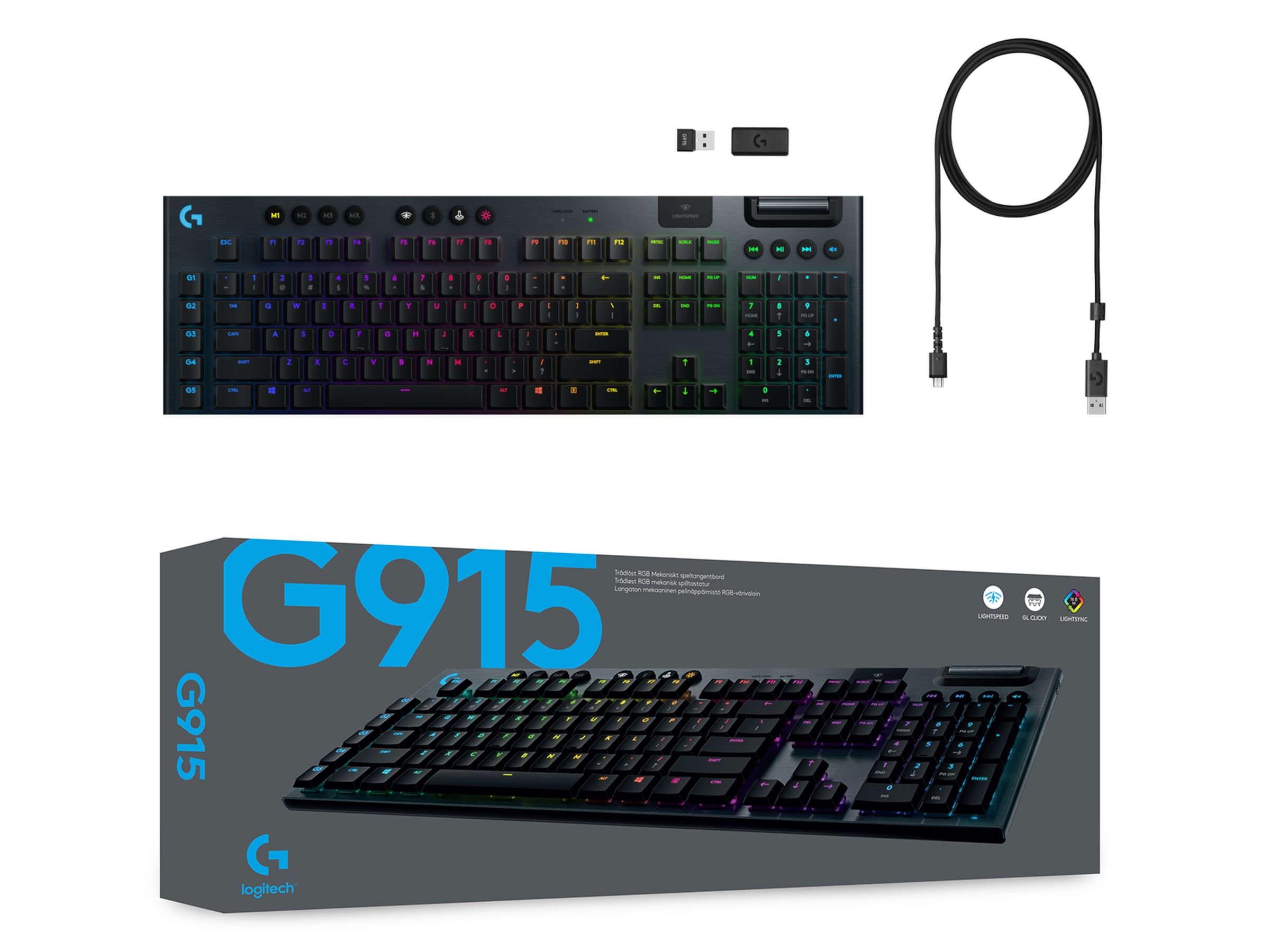 G915 tilhører en ny klasse av trådløse mekaniske spilltastaturer som kommer med 3 valg av lavprofils GL-brytere og 1 ms trådløs LIGHTSPEED-teknologi i proffklasse. Kan levere 30 timers uavbrutt spilling på full lading.* Alle tastene er fullt tilpassbare og med avansert LIGHTSYNC RGB-teknologi kan du synkronisere belysningen med ethvert innhold.