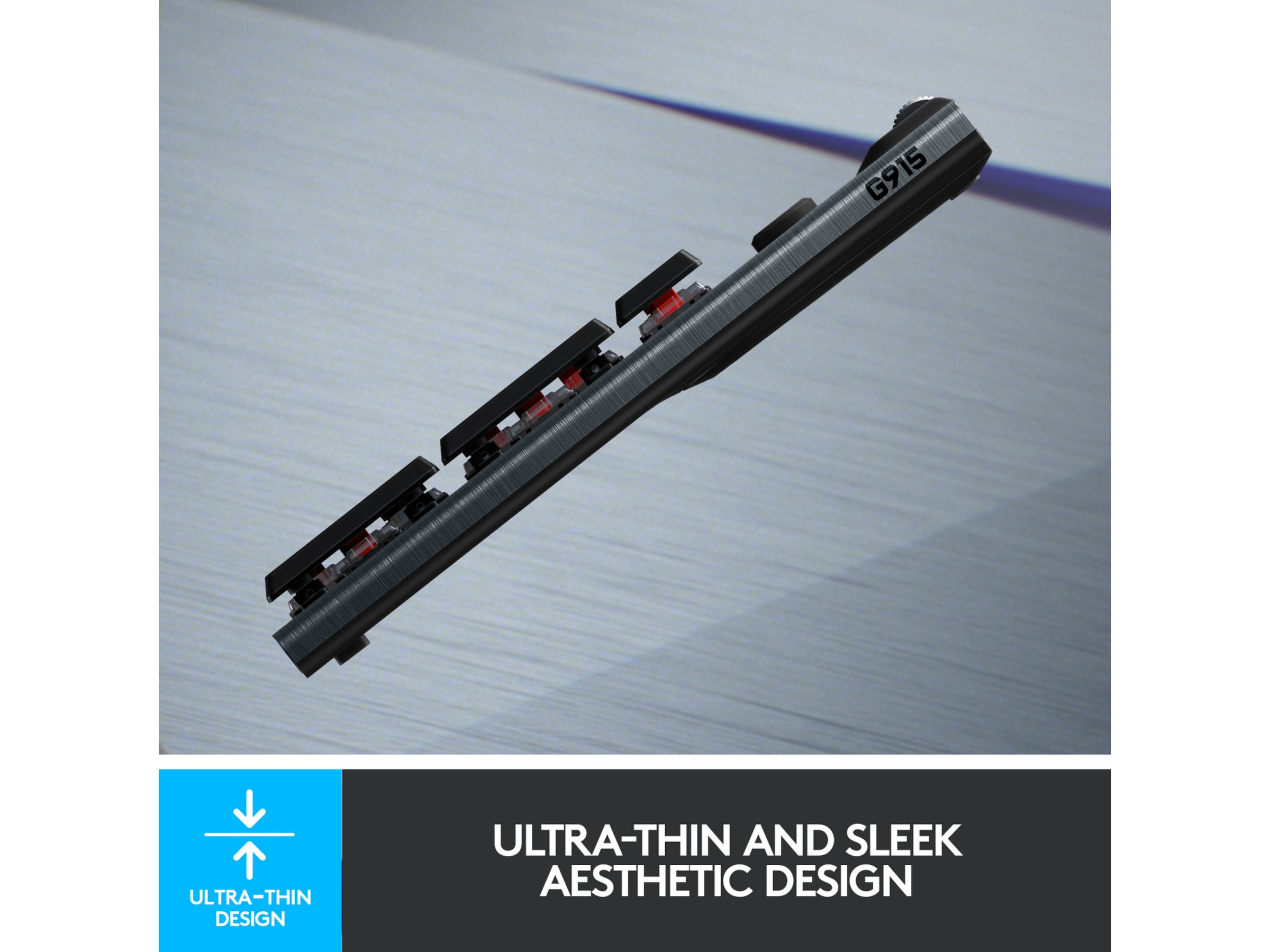 G915 er konstruert av flykvalitets aluminiumslegering for å gi en utrolig tynn, men likevel sterk og holdbar utforming.