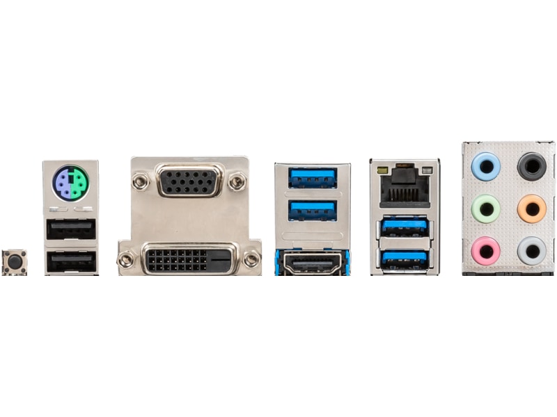 1 x PS/2-tastatur / -mus, 1 x lydinnlinje - minijakk, 1 x LAN (Gigabit Ethernet), 1 x HDMI, 1 x lydutlinje (bakre) - minijakk, 1 x mikrofon - minijakk, 2 x USB 3.1 Gen 2, 1 x lydutlinje (side-surround) - minijakk, 2 x USB 3.1 Gen 1, 1 x DVI-D, 1 x lydutlinje (senter/subbasshøyttaler) - minijakk, 2 x USB 2.0, 1 x VGA, 1 x lydutlinje - minijakk