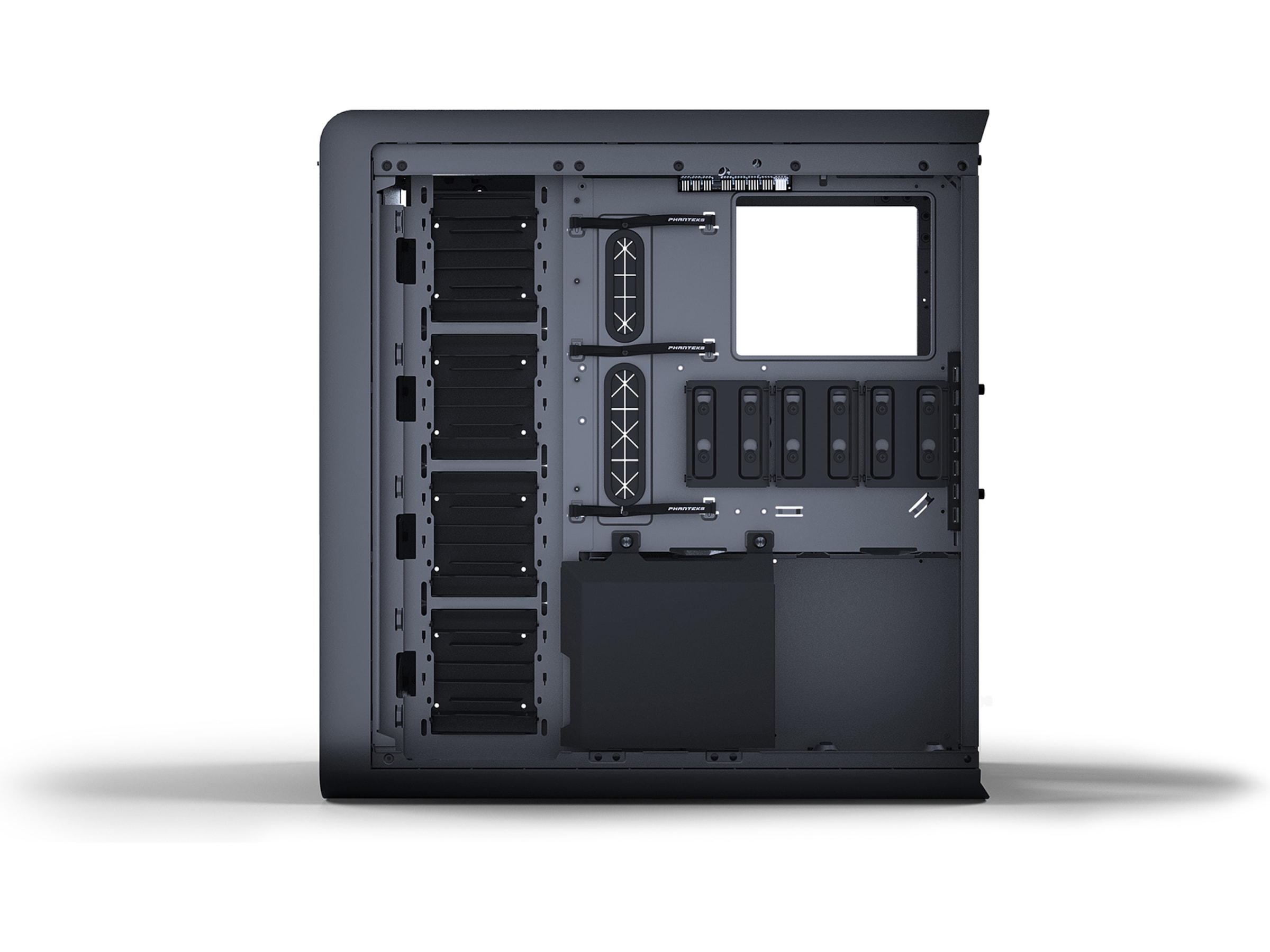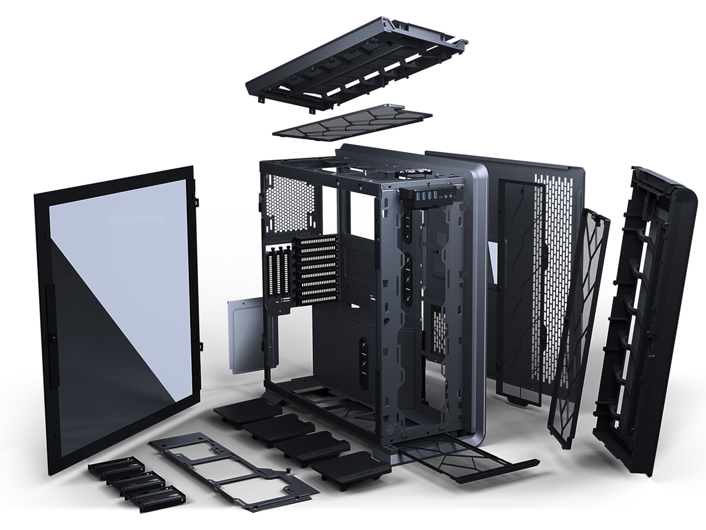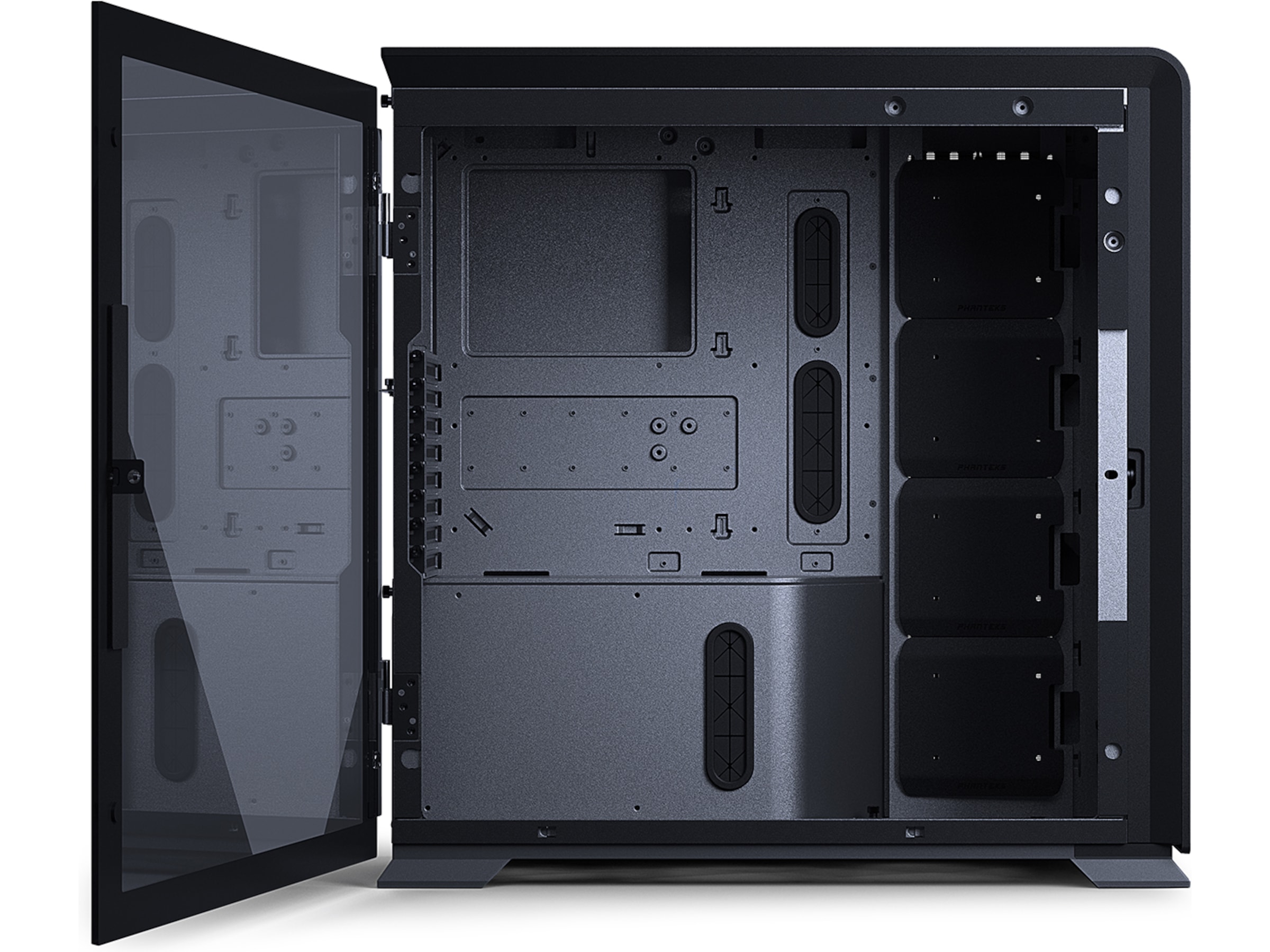 Støvfilter for sidepanel, PSU-støvfiltre, Støtter inntil 480 mm-radiator på frontpanel, Støtter inntil 480 mm-radiator i sidepanel, Dobbeltsystemklart, Støtter inntil 360 mm-radiator i bunnpanel, Frontstøvfilter, Støtter inntil 360 mm-radiator på toppanel, RGB-synkroniseringsstøtte for hovedkort, Bakre støvfilter