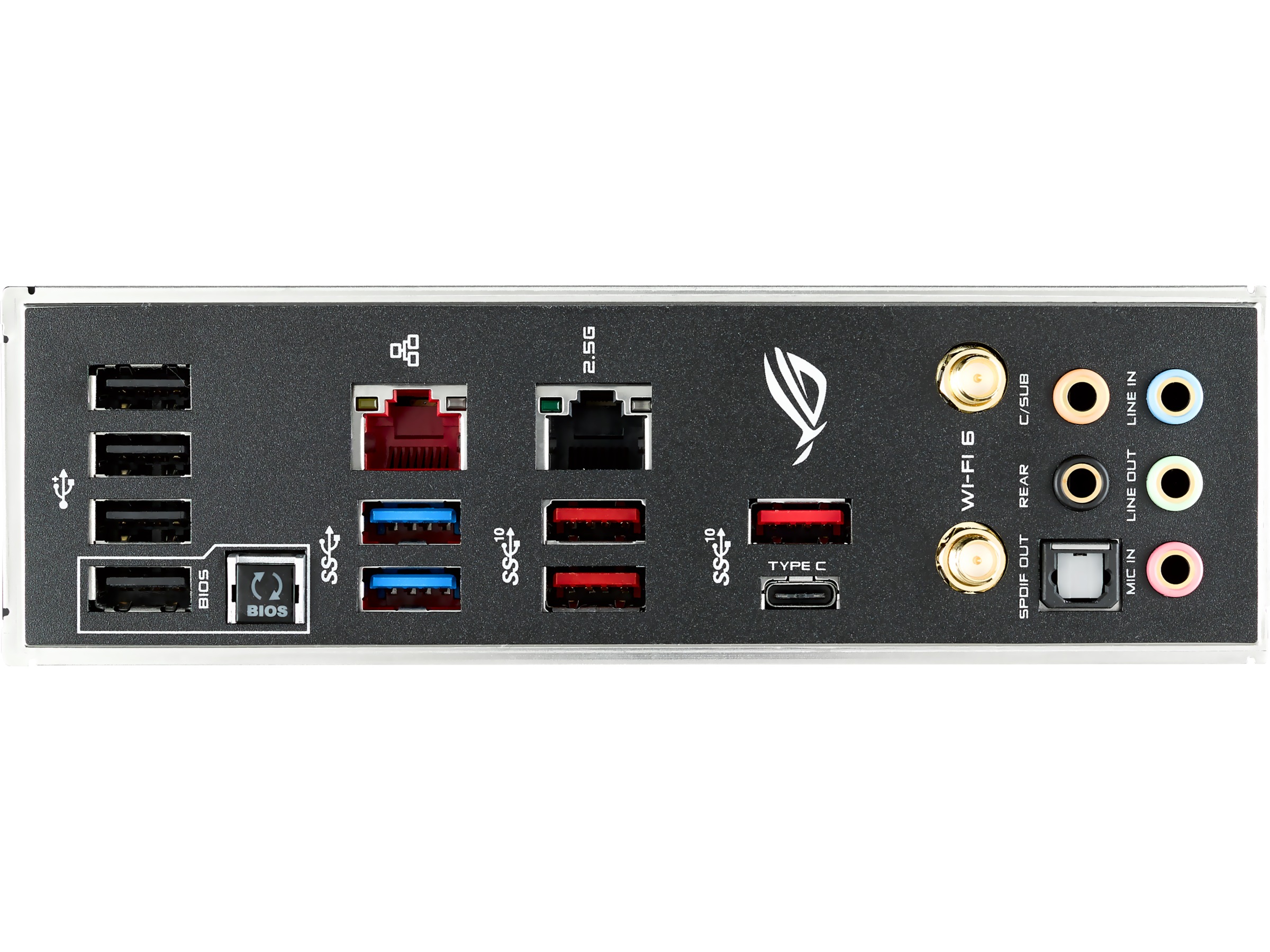 | Grensesnitt | 1 x LAN (2.5Gigabit Ethernet), 1 x lydutlinje - minijakk, 1 x USB-C Gen2, 1 x LAN (Gigabit Ethernet), 4 x USB 2.0, 1 x lydinnlinje - minijakk, 1 x lydutlinje (senter/subbasshøyttaler) - minijakk, 1 x TOSLINK, 2 x USB 3.2 Gen 1, 1 x lydutlinje (bakre) - minijakk, 1 x mikrofon - minijakk, 3 x USB 3.2 Gen 2 |