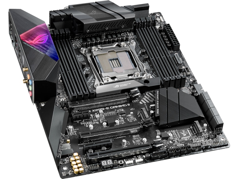 | Utvidelsesspor | 1 x PCIe 3.0 x4, 8 x 288-pins DIMM, 1 x CPU, 3 x PCIe 3.0 x16 (48-baners CPU (x16, x16/x16, x16/x16/x8 moduser), 44-baners CPU (x16, x16/x16, x16/x16/x4 moduser), 28-baners CPU (x16, x16/x8, x16/x8/x4 moduser)), 1 x PCIe 3.0 x1 |
