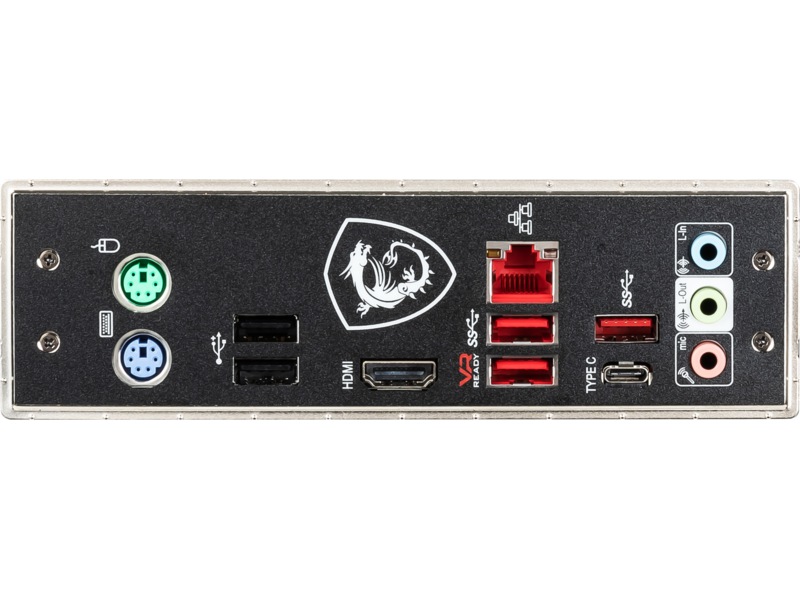 1 x LAN (Gigabit Ethernet), 2 x USB 2.0, 1 x HDMI, 1 x PS/2-mus, 1 x lydinnlinje - minijakk, 1 x mikrofon - minijakk, 3 x USB 3.1 Gen 1, 1 x lydutlinje - minijakk, 1 x USB-C Gen1, 1 x PS/2-tastatur