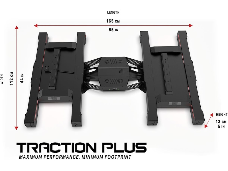 Traction Plus ble designet og utviklet i samarbeid med et bevegelseingeniørteam i verdensklasse for å levere en uovertruffen bevegelsesopplevelse. For å oppnå den ultimate realismen og presisjonen har dette krevd helt unik teknologi og prosjektering med et produkt designet fra grunnen i løpet av 4 år som inkluderer over 2000 komponenter. Plattformen er utelukkende designet og utviklet for simulering i stedet for bare å bruke kommersielle aktuatorer og tilpasning til simulering. Traction Plus er utrolig mer enn bare et system uten baktrekk og designet for å kombinere med V3 bevegelsesplattformen for å gi en banebrytende bevegelsessimulatoropplevelse.