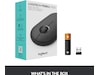 Du kan enkelt koble til viaBLUETOOTH®eller den lille 2,4 GHz USB-mottakeren, som oppbevares i det magnetiske dekselet på musen. Dessuten slipper du å bekymre deg over irriterende avbrudd eller forsinkelser med en rekkevidde på opptil 10meter2