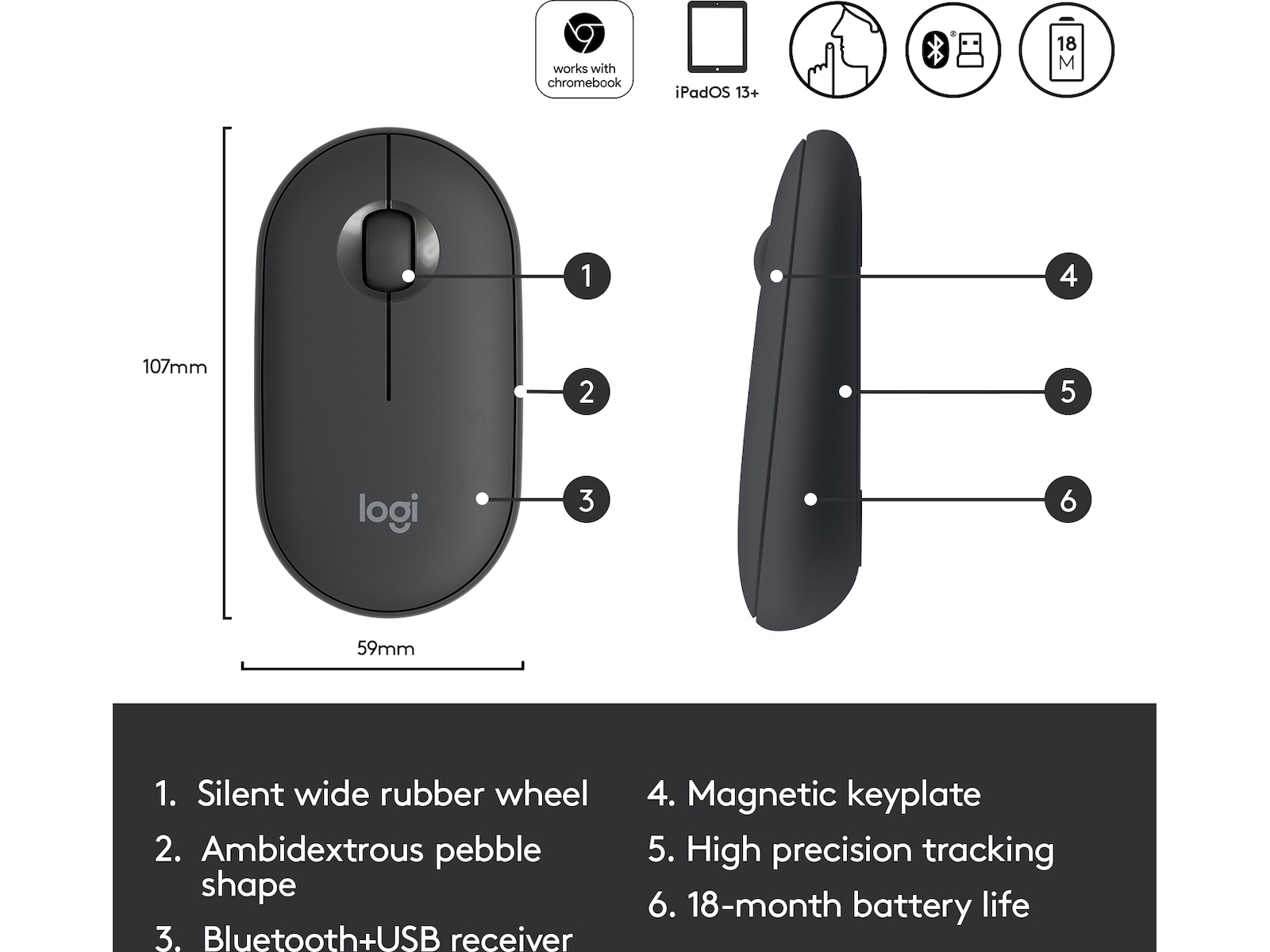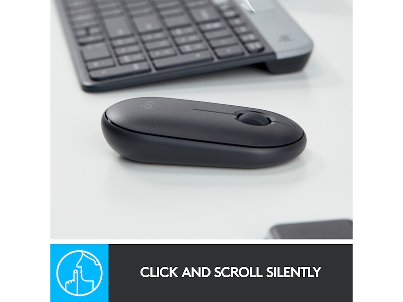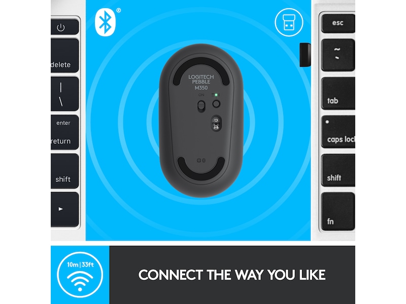 Logitech Pebble M350 sporer raskt og presist enten du bruker det på et bord på favorittkaféen eller direkte på sengeklærne.