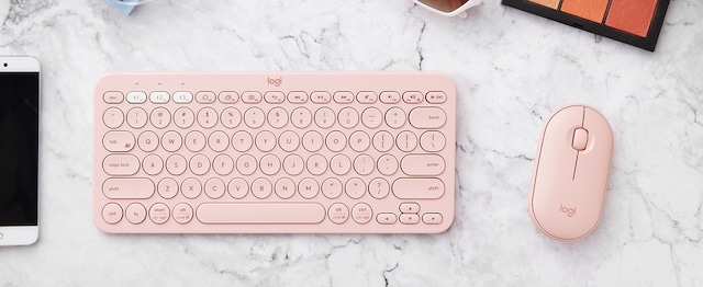 Velg Logitech Pebble M350 i off-white, grafitt,  lyserosa, så du kan velge en mus som matcher resten av tilbehøret.