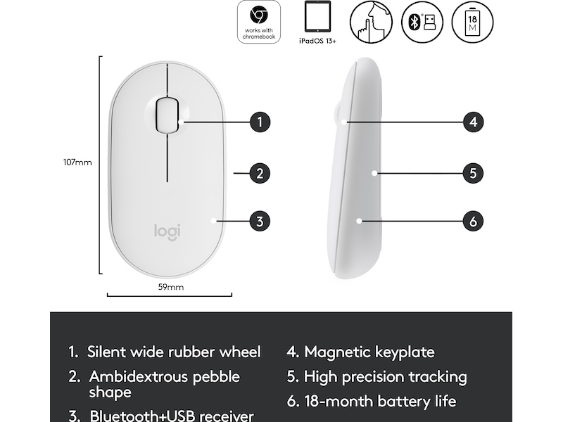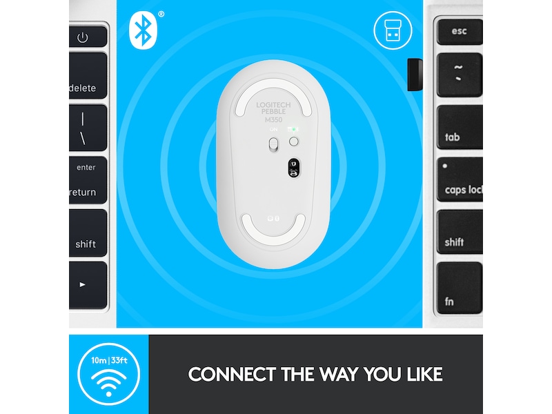 Logitech Pebble M350 sporer raskt og presist enten du bruker det på et bord på favorittkaféen eller direkte på sengeklærne.