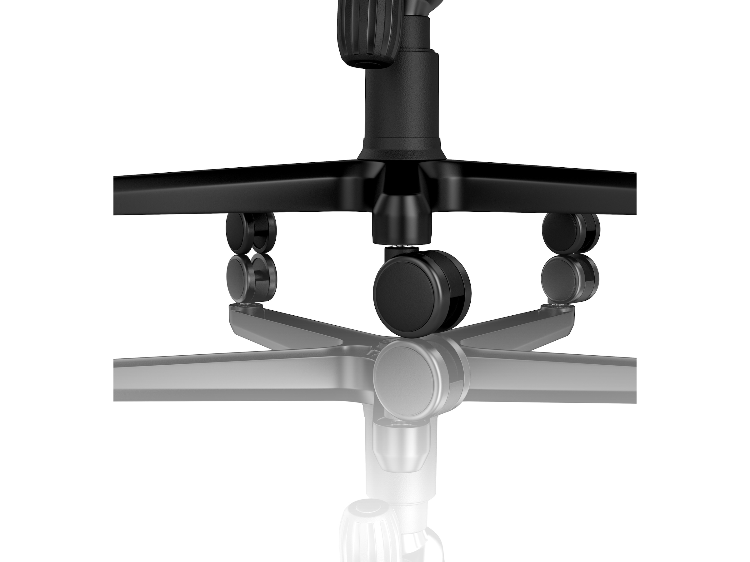 Grunnlaget til HERO-serien fra noblechairs er den pulverlakkerte sokkelen laget av solid aluminium med fem armer og spesialdesignede hjul. Disse hjulene på 60 mm består av en nylonkjerne med et polyuretanbelegg, noe som betyr at de er både stille og egner seg like godt for bruk på både harde og myke underlag. Safety Class 4-gasslift er designet sammen med den optimaliserte sokkelen for å støtte en maksimal belastning på opptil 150 kg.