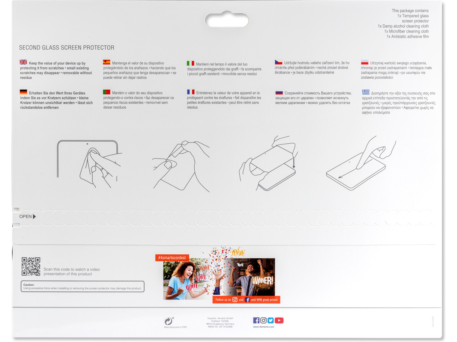 Med en overflatehardhet på 9H kan det sammenlignes med safirglass. Second Glass fra 4smarts beskytter LCD-skjermen mot støt og riper som forårsakes av skarpe gjenstander som kniver, nøkler og verktøy.