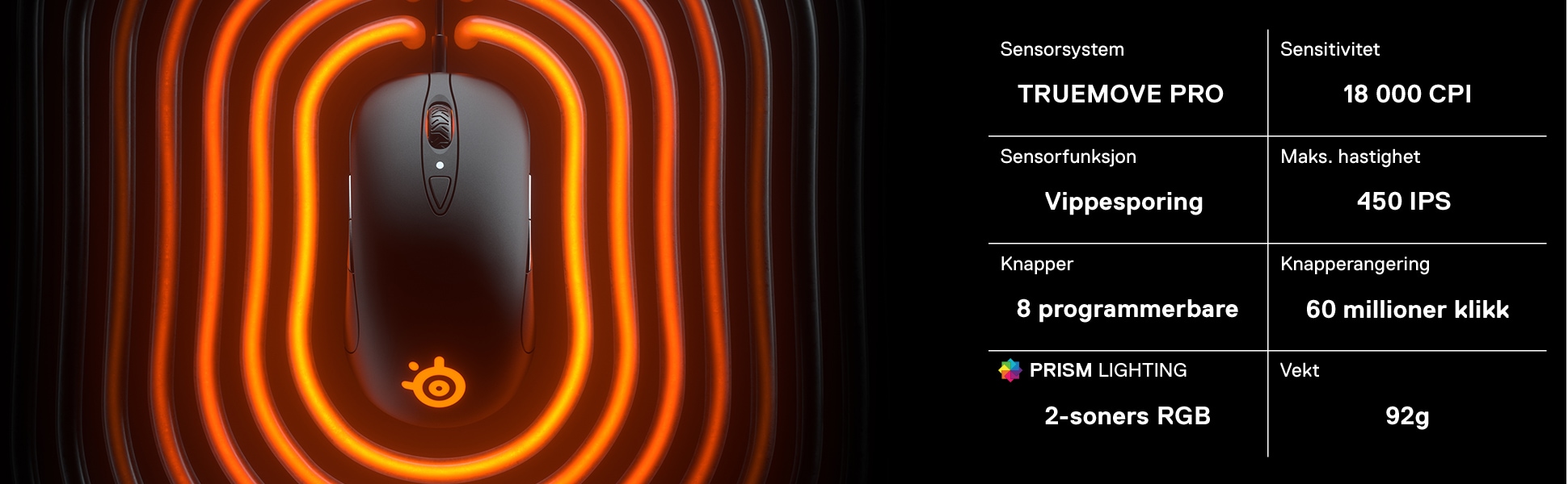 Den nyeste sensoren designet av SteelSeries og PixArt er den høyest rangerte SteelSeries-sensoren, med ekte 1-til-1-sporing, 18 000 CPI og 450 tommer per sekund-sporingshastighet.