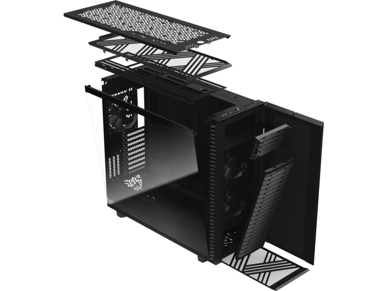 Foran: 140 mm vifte x 2 / støtte for 4 x 120 mm- eller 3 x 140 mm-vifte, Topp: viftemontering / støtte for 4 x 120 mm- eller 3 x 140 mm-vifte, Bak: 140 mm vifte x 1 / støtte for 1 x 120/140 mm-vifte, Bunn: 120/140 mm viftemontering x 2
