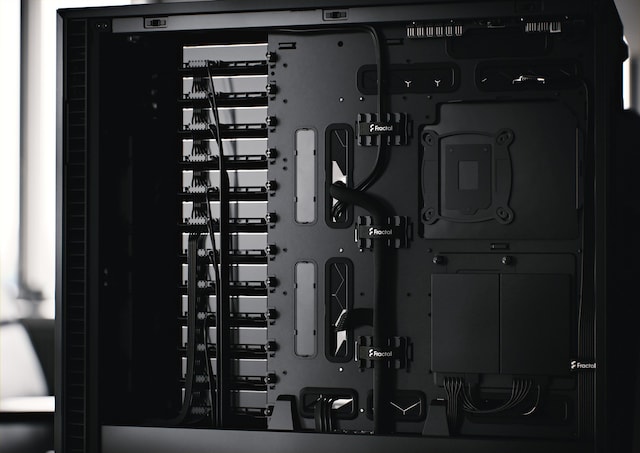 Foran: 140 mm vifte x 2 / støtte for 4 x 120 mm- eller 3 x 140 mm-vifte, Topp: viftemontering / støtte for 4 x 120 mm- eller 3 x 140 mm-vifte, Bak: 140 mm vifte x 1 / støtte for 1 x 120/140 mm-vifte, Bunn: 120/140 mm viftemontering x 2