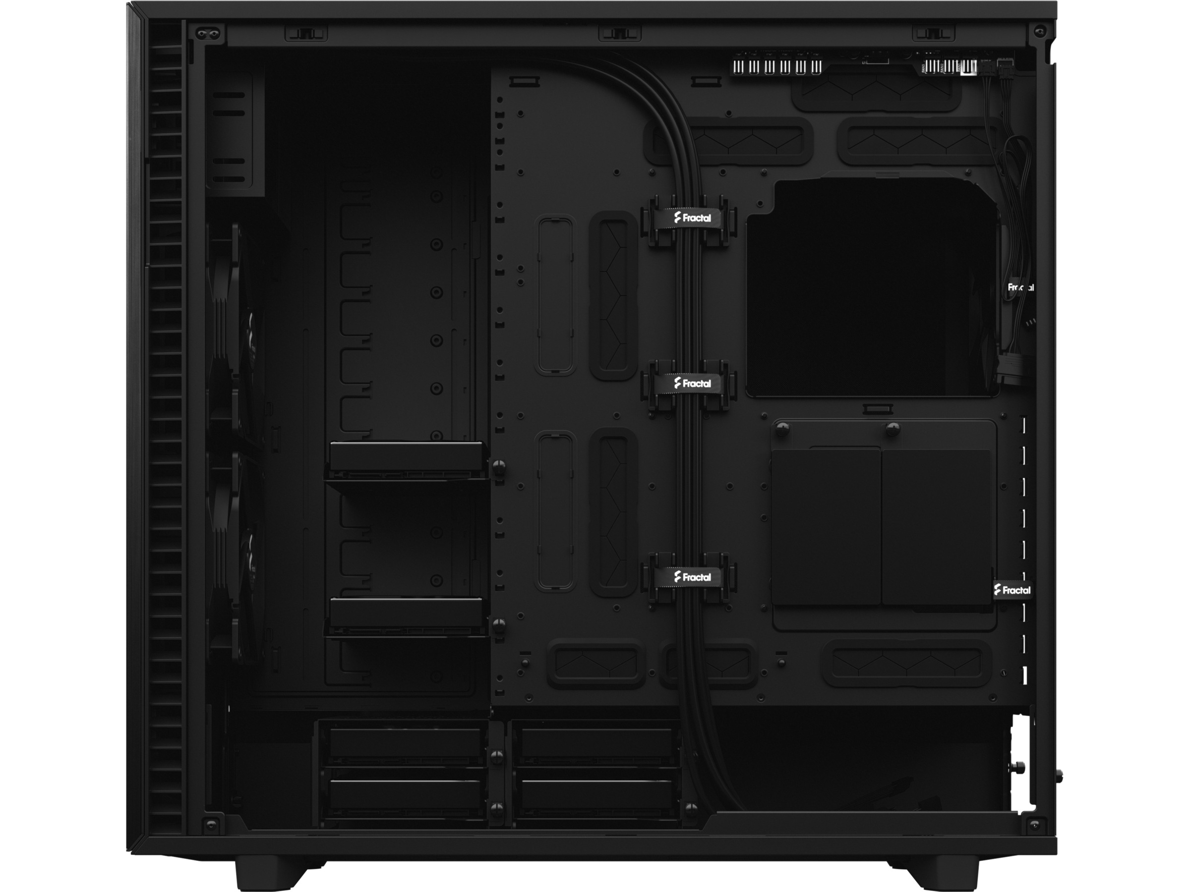 Den romslige og svært tilpassbare innsiden med to alternativer for layout har god plass til store hovedkort i opptil E-ATX- og SSI-EEB-format. En konstruksjon som er optimalisert for stille drift med industrielt lyddempede front-, topp- og sidepaneler. Gjør om til Open Layout for å få mer takhøyde og massiv vannkjøling med radiatorer på opptil 480 mm foran eller i toppen og 280 mm i bunnen. Ventilert strømforsyningsdeksel med todelt, avtagbart lokk.