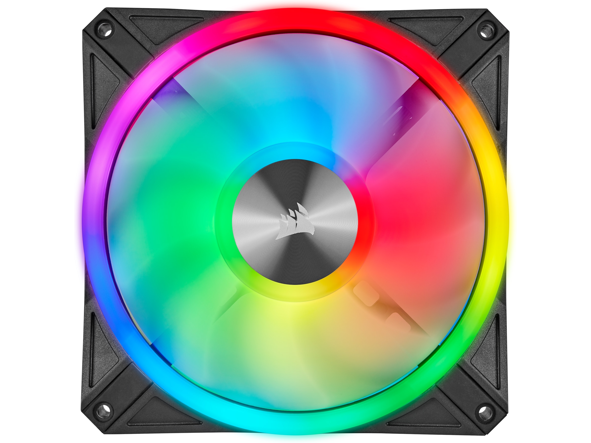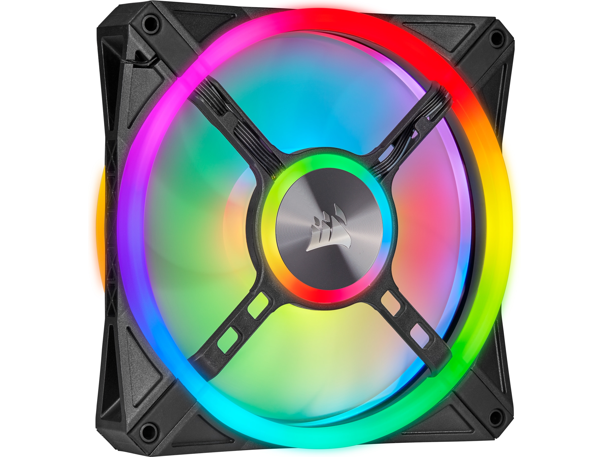 Gi PC-en din spektakulær belysning fra alle vinkler med en Corsair iCUE QL120 RGB PWM-vifte, utstyrt med 34 individuelt adresserbare RGB-lysdioder over fire forskjellige lyssløyfer.