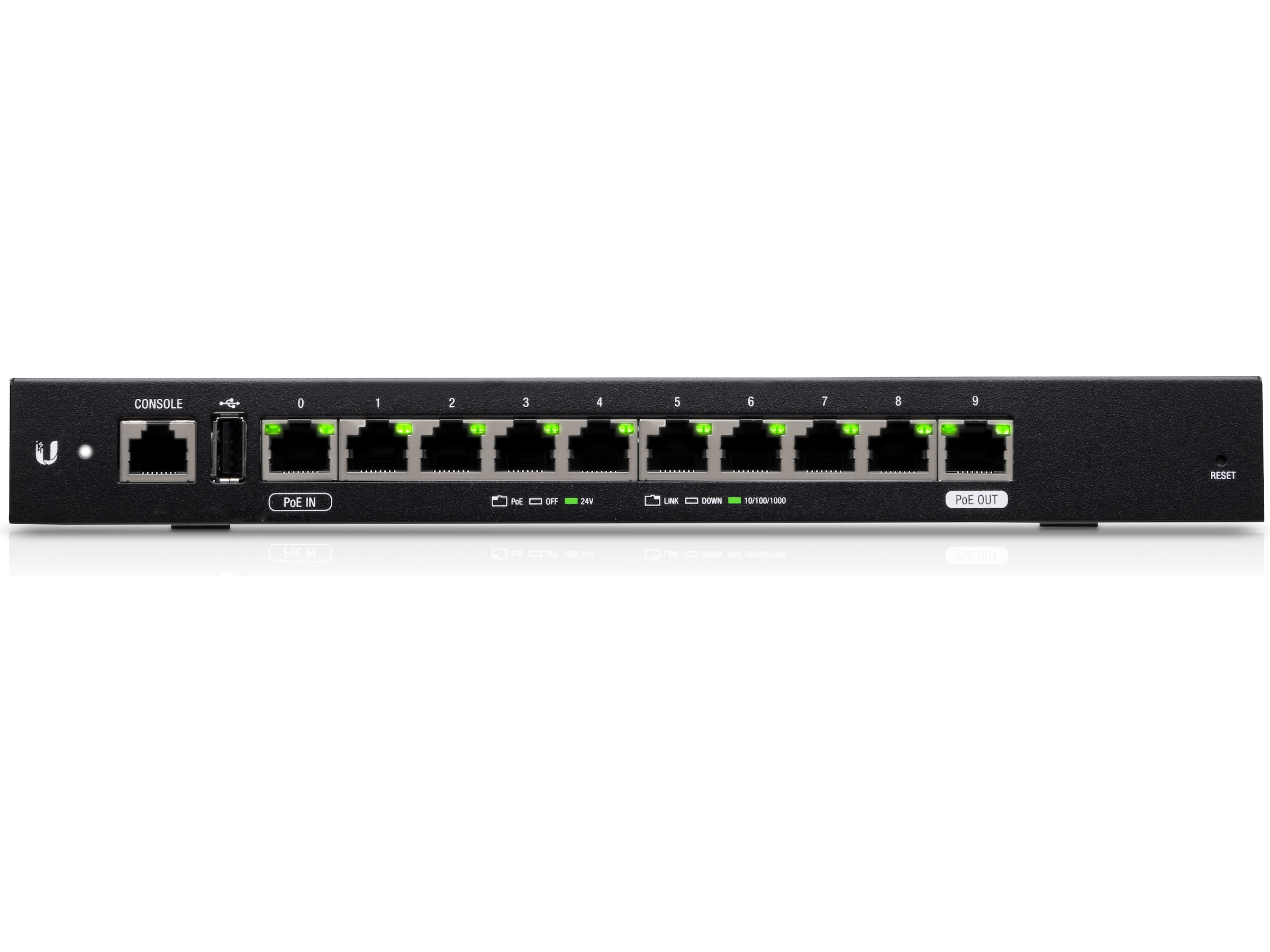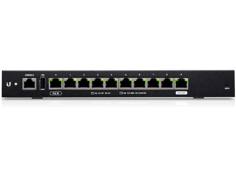 EdgeRouter™ 10X har et godt forhold mellom pris og ytelse, og er en avansert Gigabit-ruter med PoE-fleksibilitet. Ti Gigabit RJ45-porter tilbyr kobbertilkobling med PoE-inngang på port 1 og PoE-gjennomgang på port 10. EdgeRouter 10X støtter Layer-2-svitsj med en intern svitsj. For skalerbar konfigurasjon bruker du EdgeOS® eller UISP®.