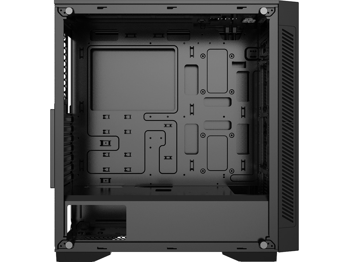 Bunnstøvfilter, PSU-skjermutskjæring, Toppmagnetstøvfilter, RGB-lyssystem, Støtter 120/140/240/280/360-mm radiator i frontpanel, Støtter 120/140/240 mm radiator på toppen, Frontstøvfilter, Frontpanel i herdet glass, Støtter 120 mm-radiator bak, Kabelstyringssystem |