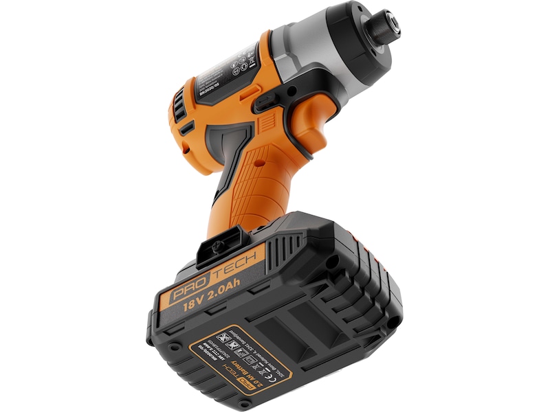 Protech 18-volts trådløs slagskrutrekker drives av et 18 V 2,0 Ah Li-ion-batteri for å levere et maksimalt dreiemoment på 180 Nm – rett og slett ideelt for et komplett utvalg av skrue- og festeoppgaver.