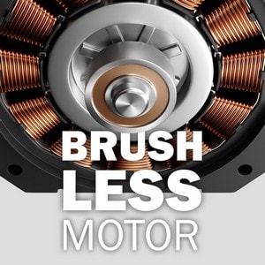 Tradisjonelt er en motor utstyrt med en kullbørste som slites ut og må byttes ut etter en viss tid. Med en børsteløs motor unngår du imidlertid dette, noe som innebærer at verktøyet ditt kan brukes i mange flere år. Samtidig vil verktøyet ditt være roligere og gi deg betydelig bedre ytelse.