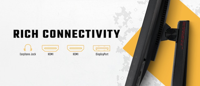 Mange tilkoblingsmuligheter, deriblant DisplayPort1.2, HDMI 2.0x2 og jack til hodetelefon, som gir støtte til et stort utvalg av multimediaenheter.