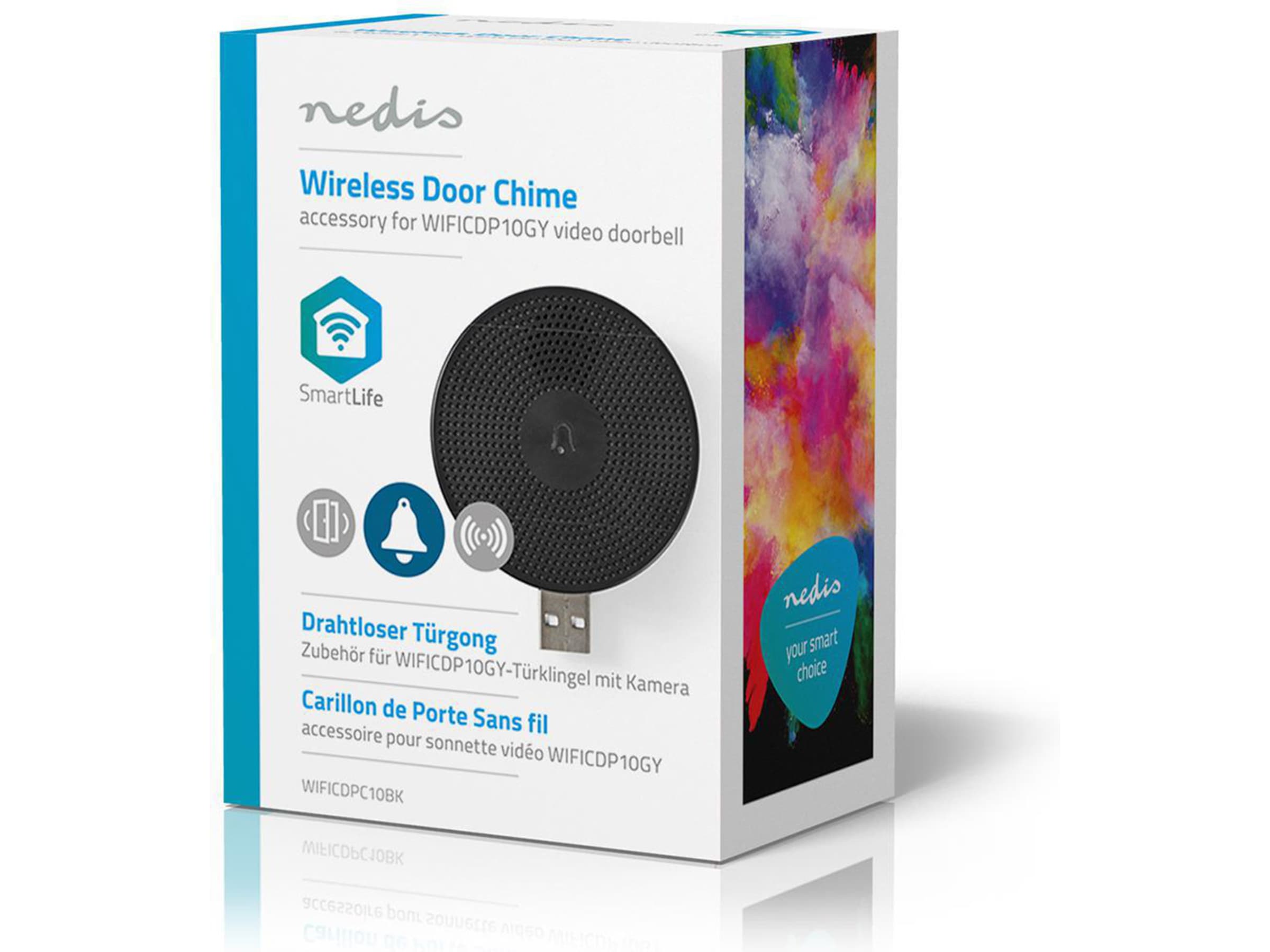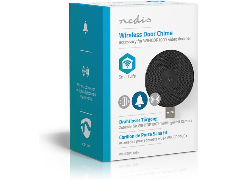 Utvid den smarte ringeklokken med kamera fra Nedis® med denne trådløse dørklokken. På denne måten vet du alltid det er noen ved døren, selv om du ikke har smarttelefonen innen rekkevidde, eller hvis den er slått av.