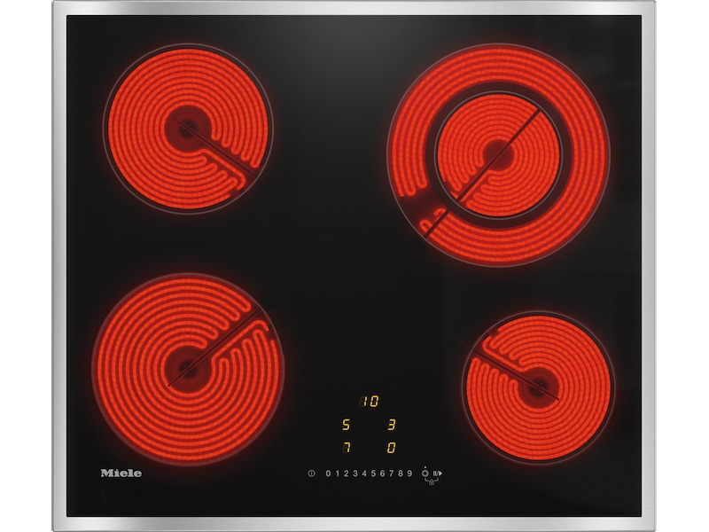 Mieles platetopper har en restvarmeindikator for hver kokesone. Den minner deg på at du ikke må ta på den varme kokesonen eller sette fra deg objekter som ikke tåler varme. Dermed kan du utnytte restvarmen og spare strøm.