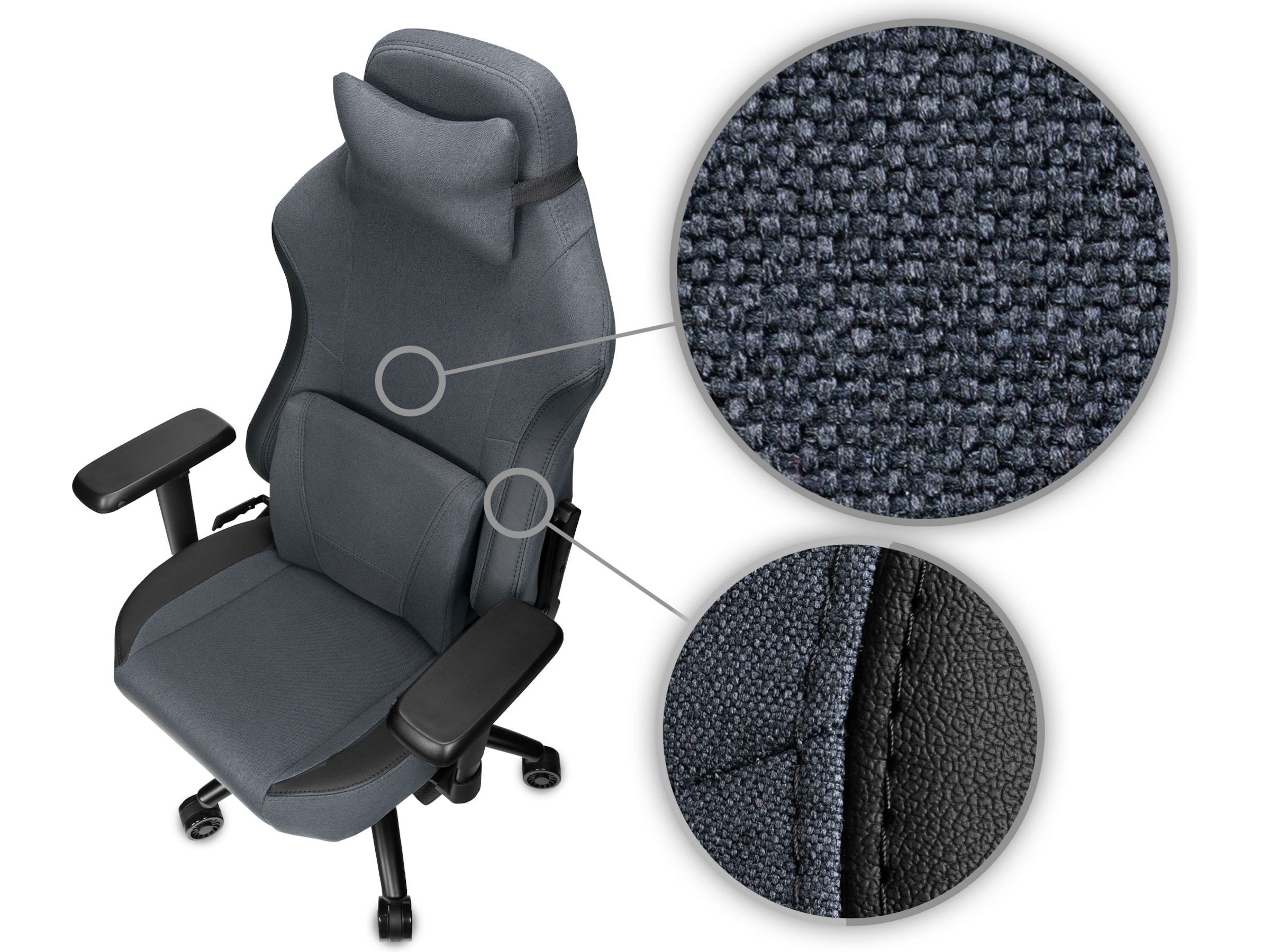 Den matchende nakke- og ryggputen med minneskum gjør stolen ekstra behagelig, og de er enkle å ta av eller skifte ut dersom man ønsker det. Designet for å gi ekstra støtte for nakken og korsryggen, slik at du kan sitte mer ergonomisk.