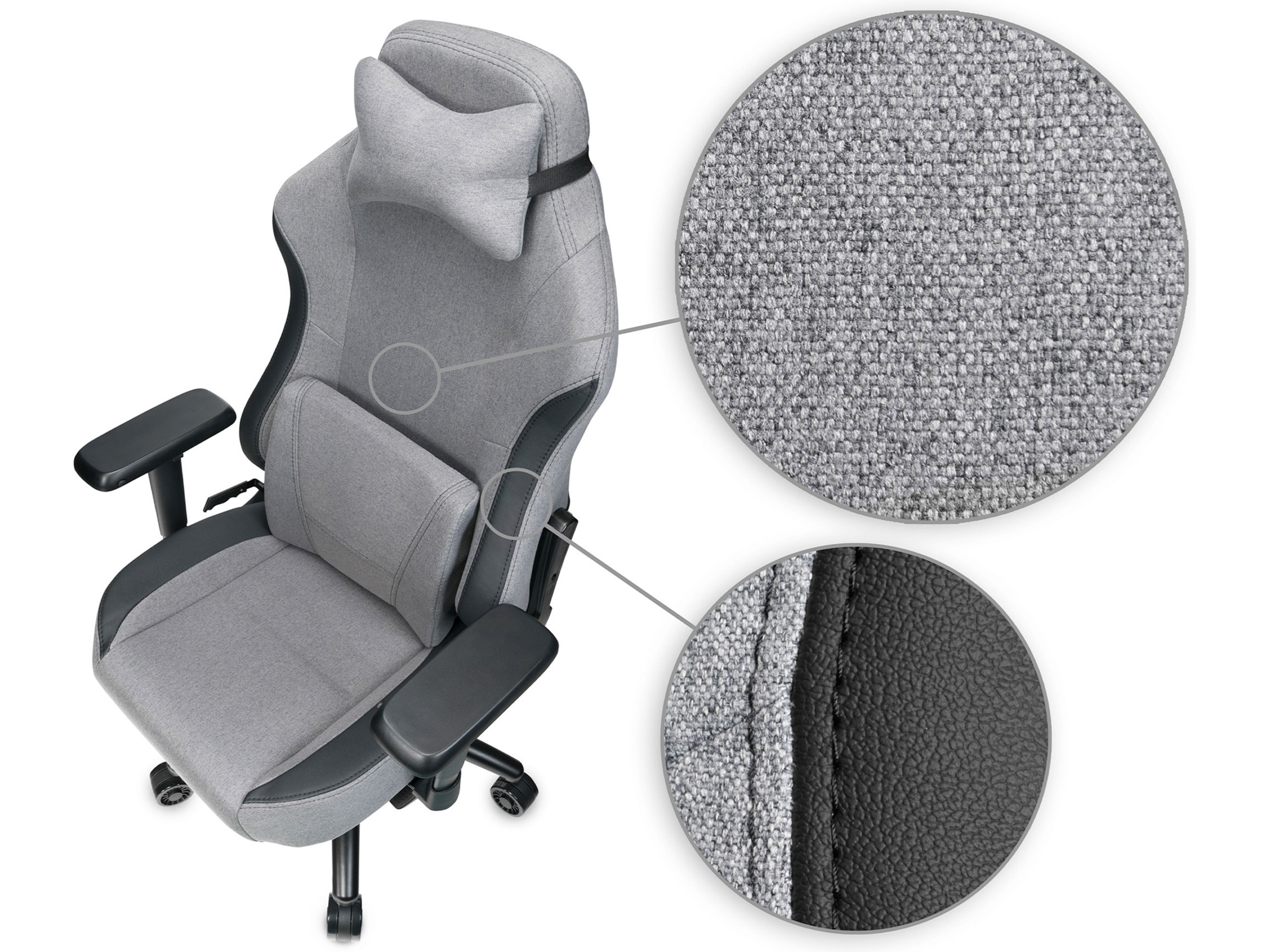 Den matchende nakke- og ryggputen med minneskum gjør stolen ekstra behagelig, og de er enkle å ta av eller skifte ut dersom man ønsker det. Designet for å gi ekstra støtte for nakken og korsryggen, slik at du kan sitte mer ergonomisk.