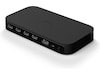 Sync Box har fire HDMI-innganger, hvor du kan koble til spillkonsoller, strømmeenheter eller andre medieenheter, og synkronisere innholdet på TV-skjermen med Phillips Hue-belysningen. Sync Box er ikke kompatibel med apper for smart-TV, fordi innholdet først må gå gjennom boksen via en HDMI-enhet.
