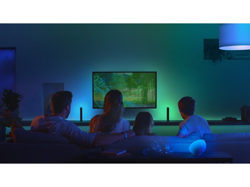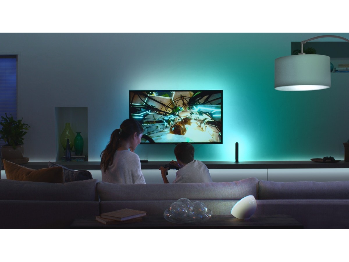 Gi liv til mediene med surround-belysning. Legg til 1 Philips Hue color og se hvordan belysningen reagerer på det som skjer på skjermen din.