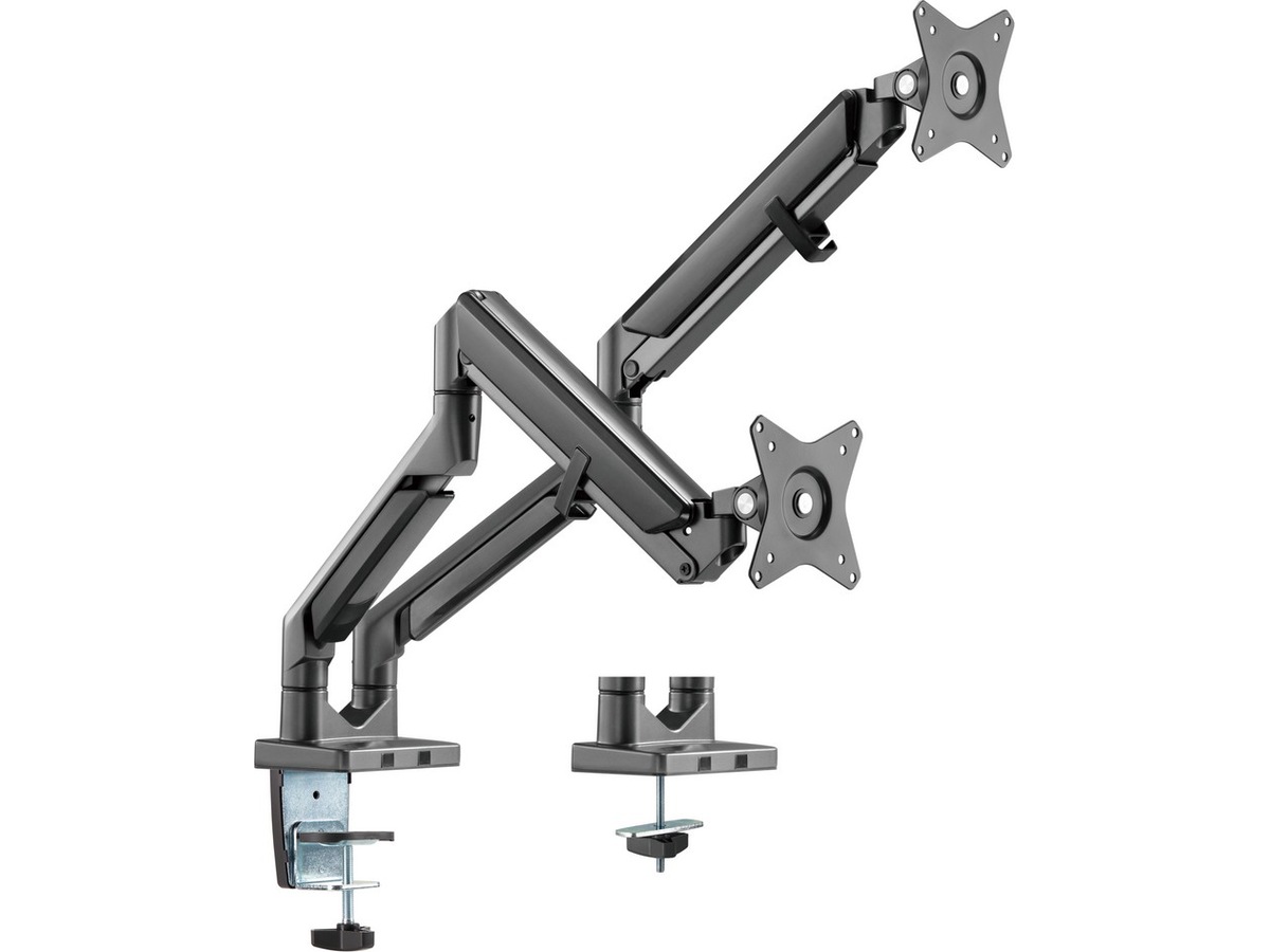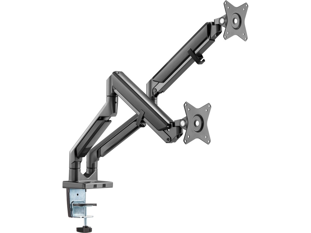 iiglo skjermfeste for to skjermer hjelper deg med å frigjøre mer plass på skrivebordet ved å la deg feste opptil to skjermer samtidig. Ved å bruke et skjermfeste kan du også plassere skjermene dine på en ideell måte, slik at du alltid kan sitte i en sunn, ergonomisk stilling. iiglo Mantis støtter både 75 mm og 100 mm VESA-feste, noe som gjør det enkelt å montere de fleste skjermer med en størrelse på mellom 17" og 32". Plasser enkelt skjermene i en nøyaktig posisjon som passer deg best!